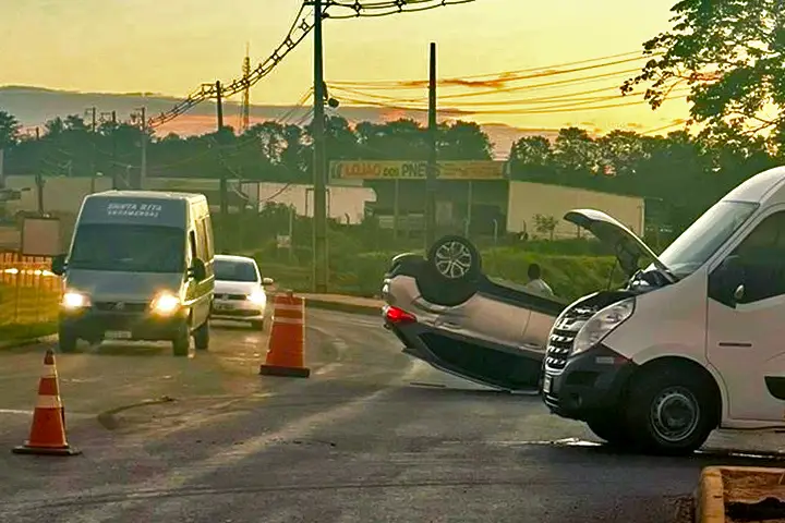 O carro da condutora capotou e parou com as quatro rodas para cima. Ela foi atendida no local por equipes de socorro e encaminhada ao Pronto Atendimento Municipal. Não houve necessidade para atendimento do condutor da van, de 49 anos.
