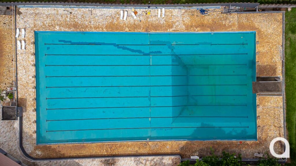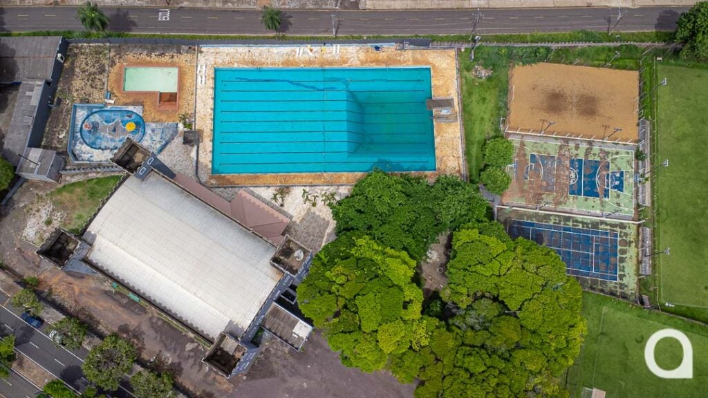 E tem razão. No terreno de mais de 20 mil m2, estão alocados o salão social, com capacidade para 1.200 pessoas, e uma imponente piscina, que, pode-se dizer sem medo de errar, é a atração principal: única olímpica na cidade, se destaca pelos seus 50×25 metros de comprimento e largura; profundidade que varia de 1.10 a 4.5m; e plataforma de salto com 2.5, 5 e 7.5 de altura.