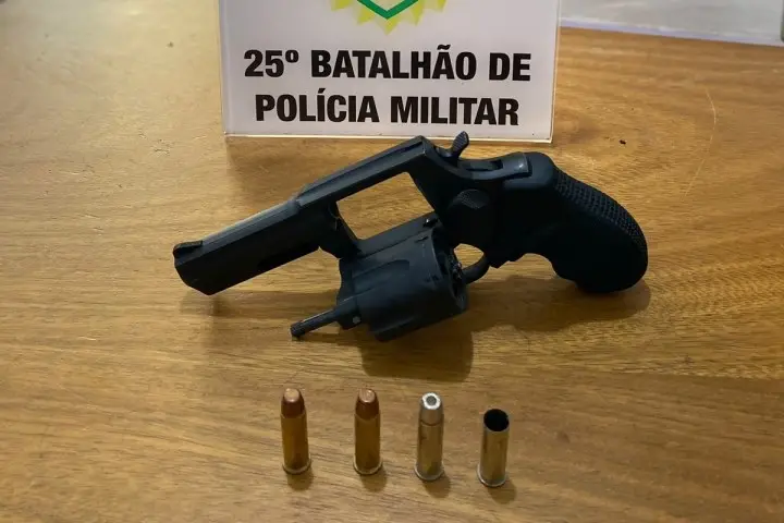 Em revista pessoal, os policiais encontraram escondido dentro do capacete um revólver calibre .38 com três munições intactas e uma deflagrada.