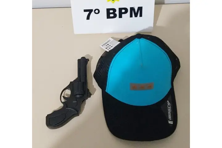 Com ele – que já é conhecido no meio policial – os policiais encontraram um simulacro de arma de fogo escondido na cintura. Também foi constatado que ele deveria utilizar a tornozeleira de monitoramento eletrônico, porém havia rompido o equipamento.
