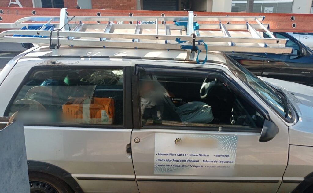 Os equipamentos estavam dentro do carro, que estava estacionado em frente ao prédio onde ele reside. O criminoso estragou a porta do passageiro para extrair as ferramentas que estavam dentro do veículo.