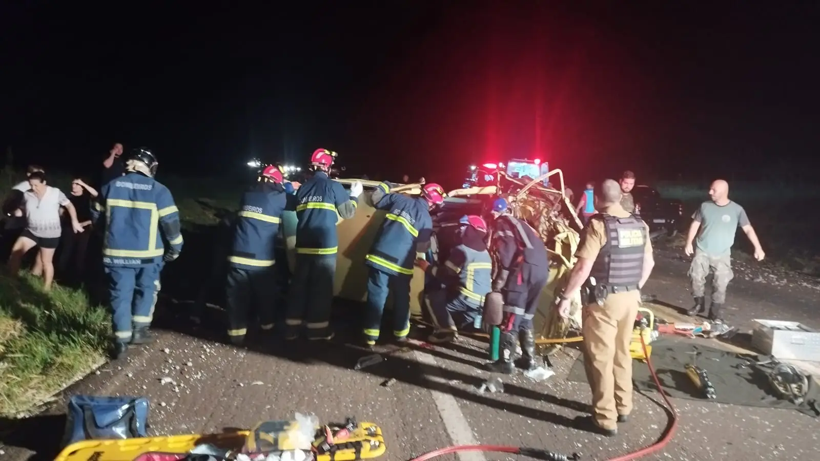 Na Brasília estava somente o motorista, um senhor. Ele ficou preso entre as ferragens e após ser retirado foi encaminhado em estado gravíssimo pelas equipes do Corpo de Bombeiros e do Samu (Serviço de Atendimento Móvel de Urgência) para o Hospital Nossa Senhora Aparecida. O condutor da caminhonete teve ferimentos leves.