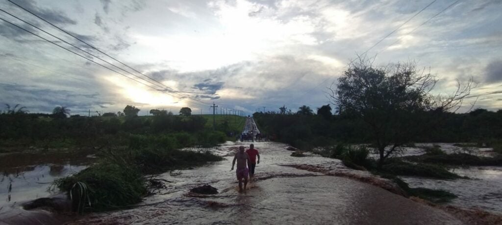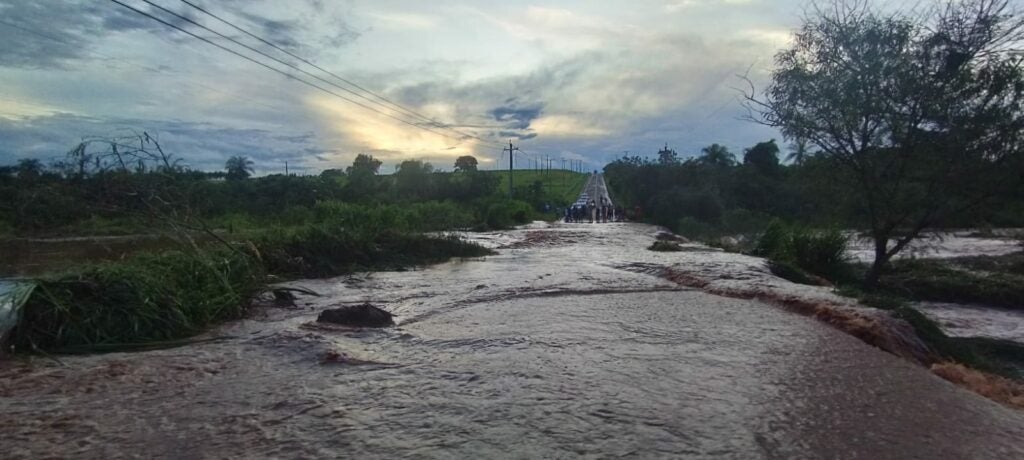 O trânsito ainda não havia sido interditado no local por volta das 19h40. E havia alguns motoristas se arriscando ao trafegar pela água com correnteza. Um vídeo divulgado nas redes sociais mostra um motociclista que quase é arrastado pela água que estava passando por cima da ponte.