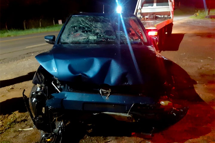 O carro parou dentro do barranco de aproximadamente 5 metros de altura e ficou com o teto completamente submerso na água. O condutor saiu do veículo bastante desorientado e com escoriações pelo corpo, além de um corte no joelho. Ele teve que receber atendimento do Samu (Serviço de Atendimento Móvel de Urgência), que forneceu ao suspeito uma manta térmica para que ele pudesse se aquecer pois estava todo molhado pelo acidente.