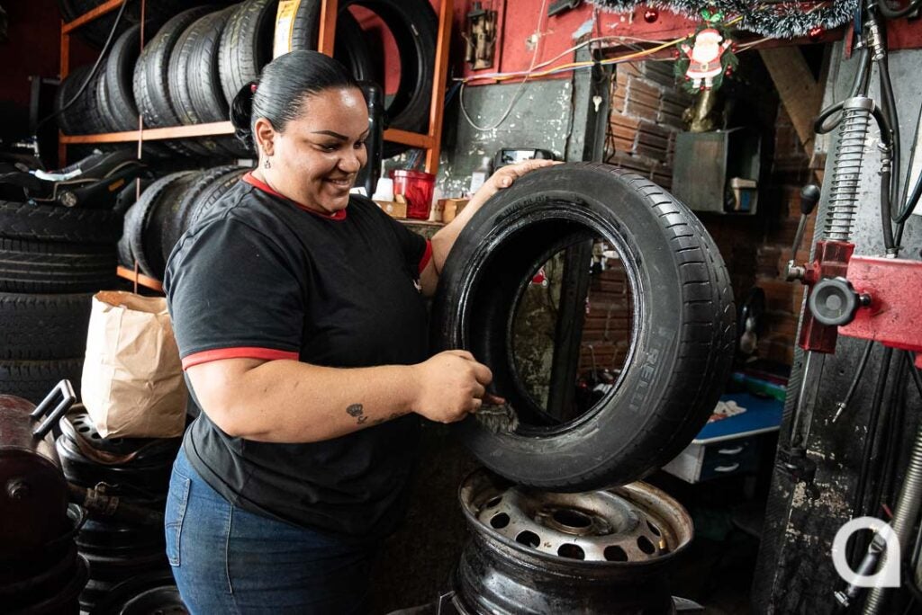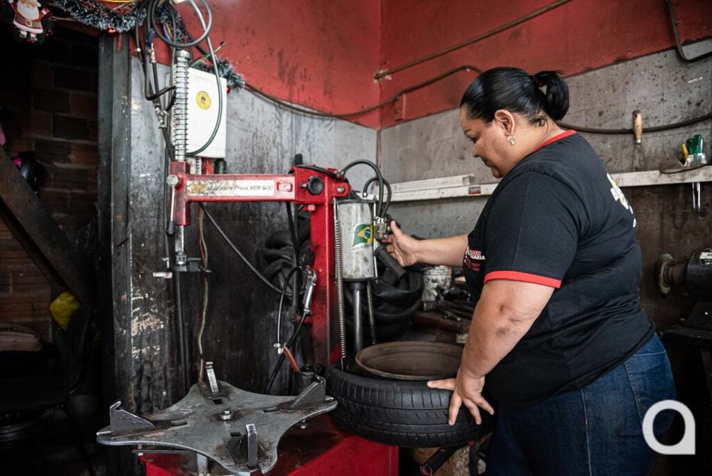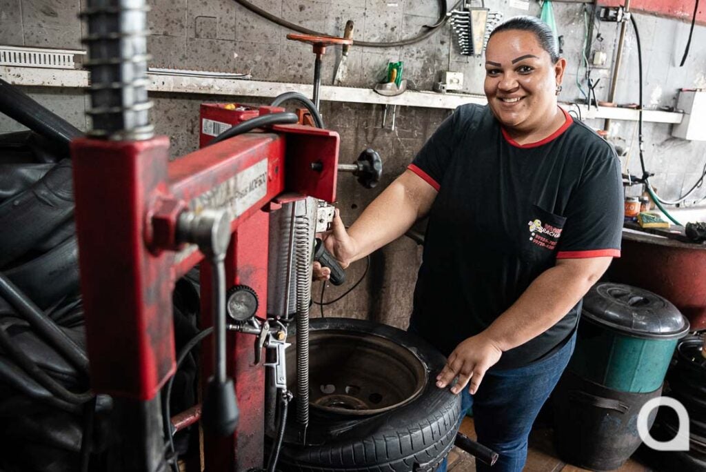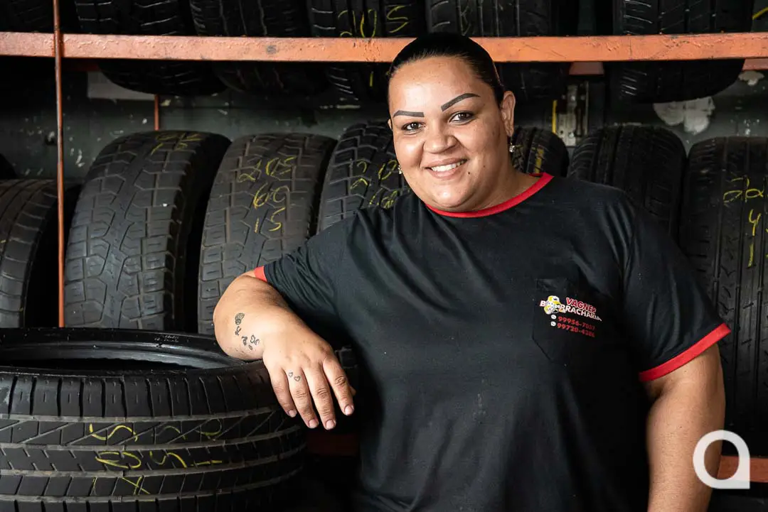 Após deixar trabalho em supermercado, mulher se destaca como borracheira em Umuarama