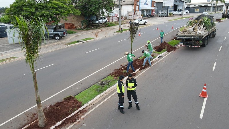Prefeitura inicia plantio de palmeiras imperiais nos canteiros centrais da avenida Tiradentes