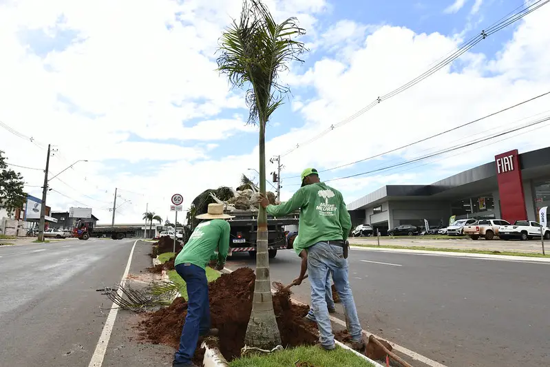 O secretário Rubens Sampaio relata que quatro árvores (sibipirunas) foram retiradas de uma quadra por estarem condenadas. “Elas já haviam passado por testes e recebido diagnóstico fitossanitário, desta forma precisávamos adotar medidas preventivas para resolver o problema. A chegada dessas palmeiras, além de trazer mais beleza e modernidade para aquele trecho da avenida, ainda traz mais segurança para a população”, comentou.