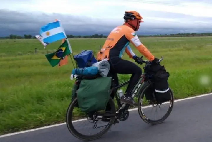 O Cabo Vieira viaja com sua bicicleta de forma totalmente independente, levando consigo, na mochila, a barraca, o saco de dormir, as ferramentas, entre outros materiais necessários, somando 25 kg de bagagem.