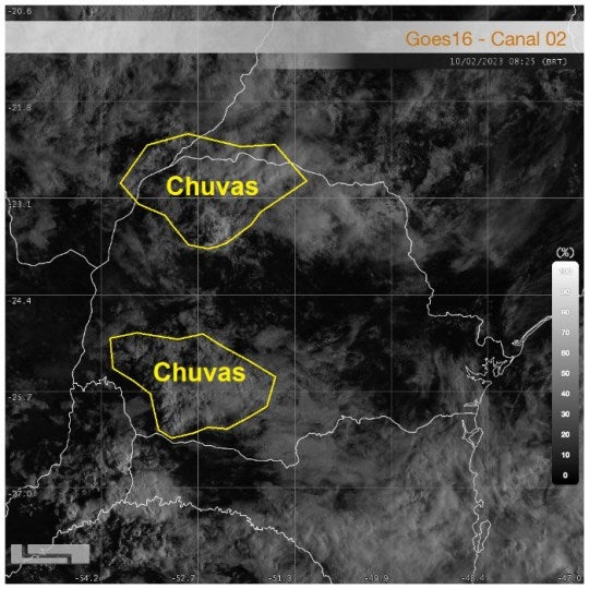 Manhã com registro de chuvas em parte do noroeste, oeste e o sudoeste do Paraná. No geral as precipitações são fracas, com algumas descargas atmosféricas. Sol aparece em vários setores, por isso a previsão é de termos mais um dia de tempo abafado no Estado, de acordo com o meteorologista Samuel Braun, da Simepar.