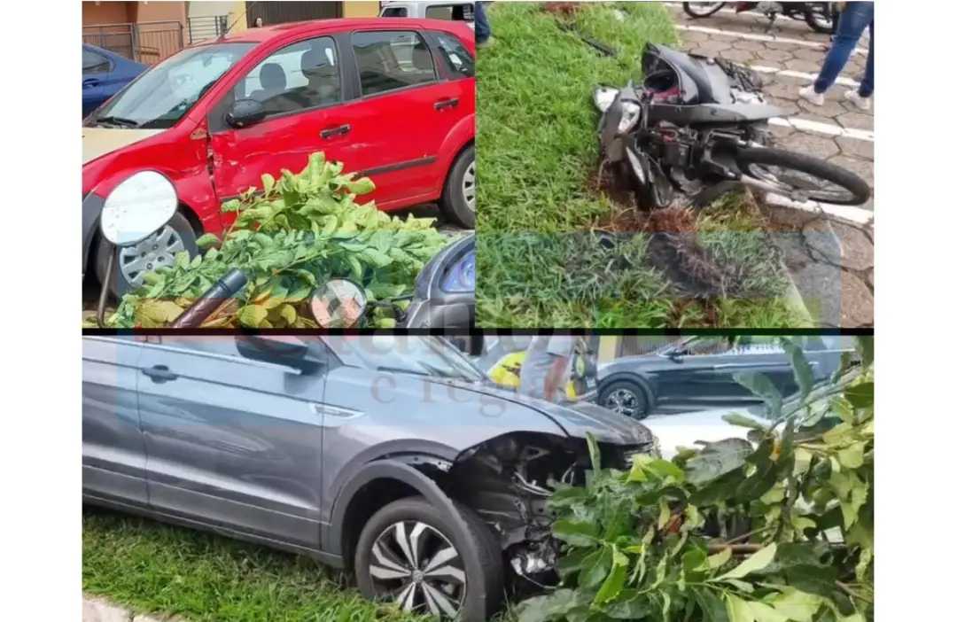 Um acidente impressionante foi registrado nesta sexta-feira (10) na avenida Goiás, centro de Cianorte. Uma motorista cruza o canteiro central da avenida e colide contra veículos e uma árvore.