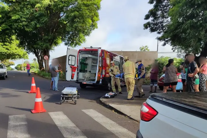 Acidente deixa motociclista ferido no cruzamento das ruas Irati e Tocantins, em Umuarama
