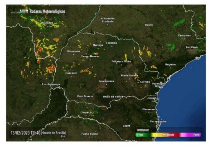Ainda de acordo com o Simepar, é previsto ocorrências durante todo o período da tarde e até as 20h.