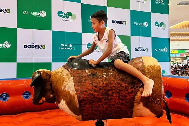 A praticamente 20 dias do início da 48ª Expo Umuarama/21ª Feira Internacional, o Shopping Palladium entra ainda mais no clima do evento e dá início neste final de semana, ao 1º Campeonato de Touro Mecânico do empreendimento. A competição, que tem a parceria da Sociedade Rural, será ao lado da loja da Expo, no acesso da praça de alimentação.