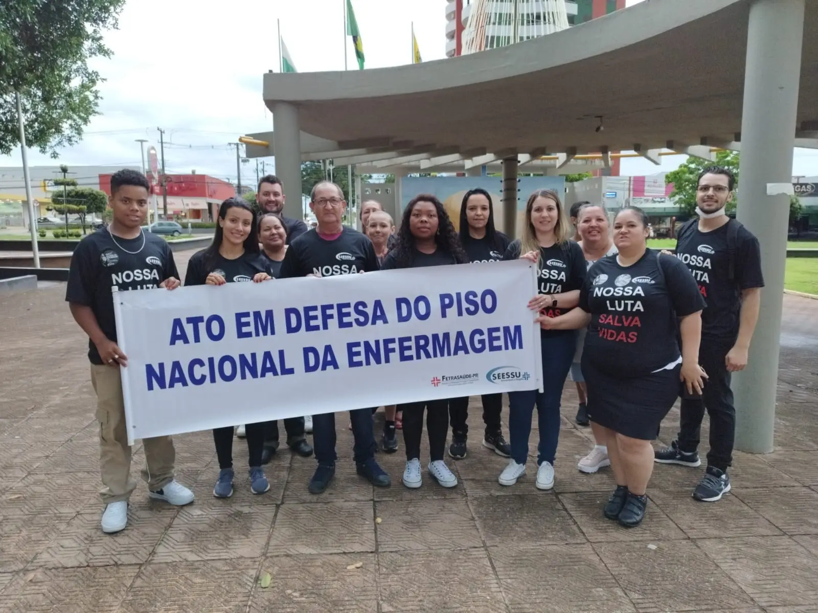 O Sindicato dos Empregados em Estabelecimentos de Serviços de Saúde de Umuarama e Região (Seessu) realizou por volta das 18h de terça-feira (14) um protesto para reivindicar o cumprimento da Lei nº 14.434/2022. O objetivo é cobrar a implementação do Piso Nacional da Enfermagem.