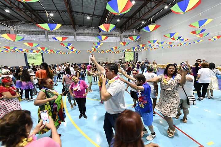 “É uma alegria ver o pessoal tão animado. Trouxemos os nossos grupos de ônibus até o ginásio para que aproveitem ao máximo e levem essa animação toda para casa, para suas vidas”, destacou a secretária Adnetra Vieira Santana, da Assistência Social.