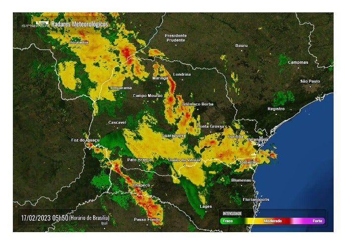 “A madrugada seguiu com bastante instabilidade sobre o Paraná, com áreas de chuva atuando em diversas regiões do Estado. Alguns temporais localizados também foram registrados, especialmente em regiões entre o centro o norte do Estado. Destaque para os seguintes volumes de chuva registrados até o momento: Icaraíma (61,8 mm), Cidade Gaúcha (60,2 mm), Campo Mourão (50,0 mm), Cândido de Abreu (45,6 mm), Telêmaco Borba (44,2 mm), Loanda (43,8 mm) e Cianorte (42,8 mm)”, explica Lidia Luisa Mota, da Simepar.