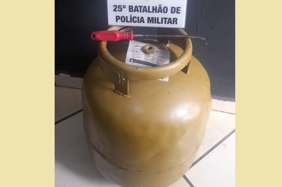 A equipe foi solicitada pelo Copom (central telefônica) a atender um furto em andamento. Foi visto um rapaz segurando um botijão de gás do lado de fora de uma residência.