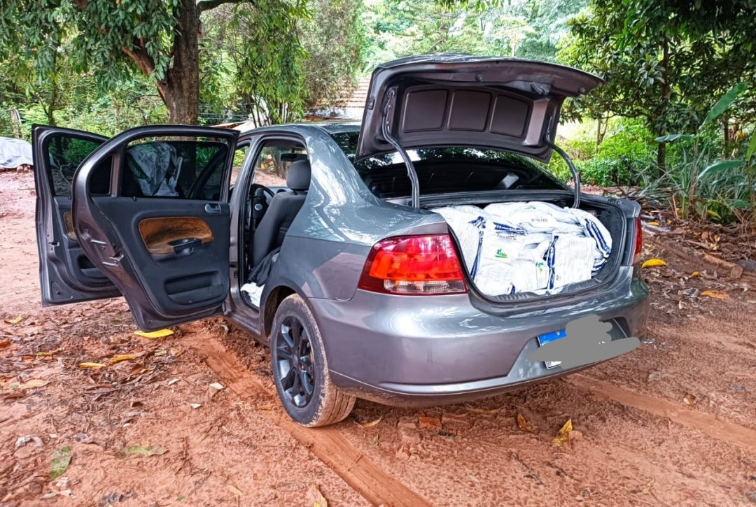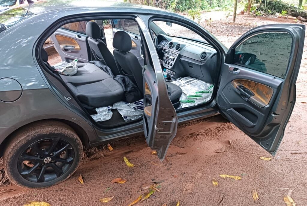 Os policiais realizavam patrulhamento pela PR-323 nas proximidades do km 349 quando avistaram um VW/Voyage de cor cinza no sentido oposto. O condutor realizava uma manobra em frente a um carreador de uma chácara na margem da rodovia, o que gerou suspeita – demonstrado uma tentativa de se esconder rapidamente.