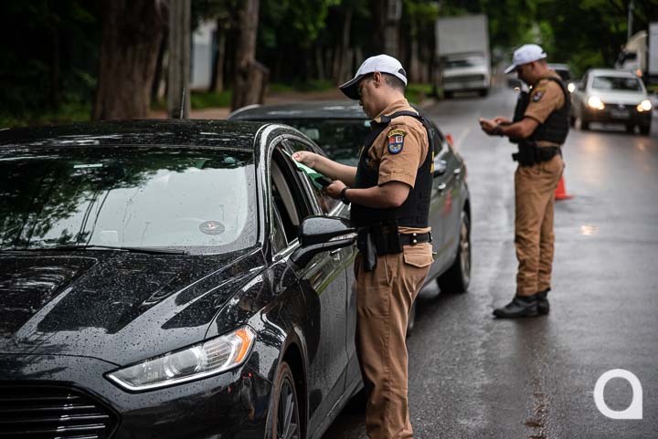 PM apreende 2 veículos e emite 15 notificações durante blitz em frente ao Bosque dos Xetá