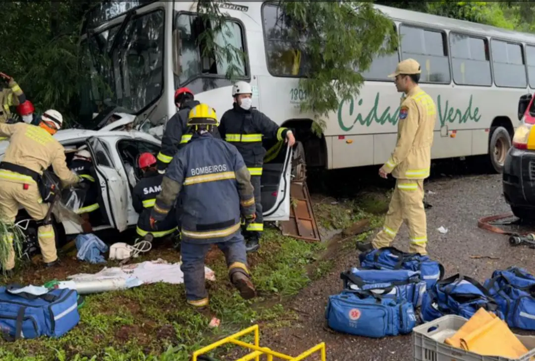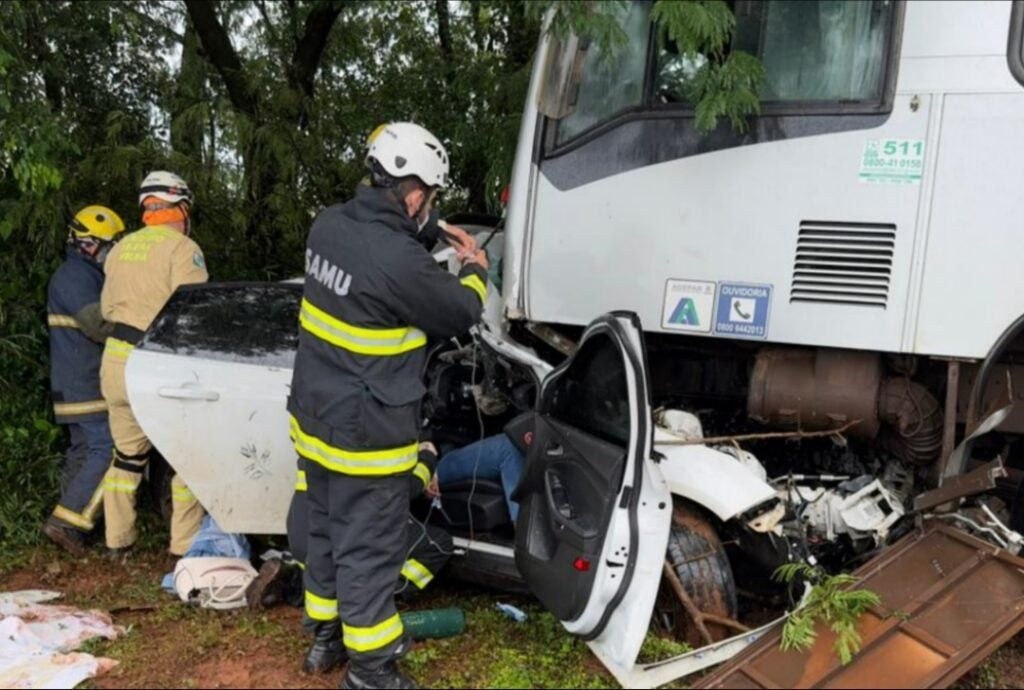 Uma grave colisão entre um carro e um ônibus foi registrada na tarde desta terça-feira (21) na rodovia PR-323, no trecho entre Água Boa e Dr. Camargo, região de Maringá. O acidente resultou em duas pessoas feridas.