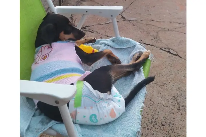 Além da atenção triplicada, a família tem que ficar trocando o animalzinho de local, pois ela não consegue nem se arrastar pelo chão. Eles também precisam alimentá-la na boca e trocar sua fralda, já que a filhote atualmente está com incontinência fecal e urinária devido ao acidente.