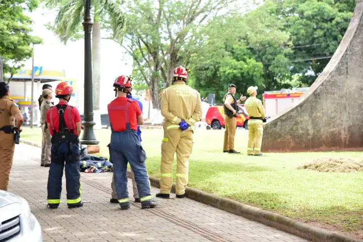 Equipes dos Bombeiros e da Polícia Militar estão neste momento na praça da Catedral de Umuarama atendendo uma situação de crise.