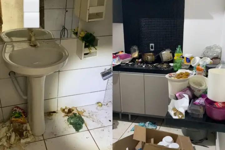 A casa estava suja, bagunçada, repleta de objetos quebrados, com inclusive fezes pelo chão do banheiro e cômodos revirados. Havia também comida estragada pelos balcões da cozinha, na pia e na geladeira, além de bichos e mosquitos voando próximo às crianças.