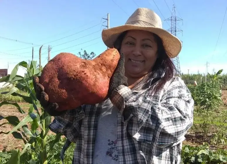 Uma moradora de Umuarama ficou surpresa ao colher uma batata-doce gigante na última quinta-feira (23). O legume de seis quilos foi colhido pela paranaense Vandete Elias dos Santos, de 55 anos, que cultiva batatas há cerca de um ano e meio na horta comunitária localizada no Jardim São Cristóvão.
