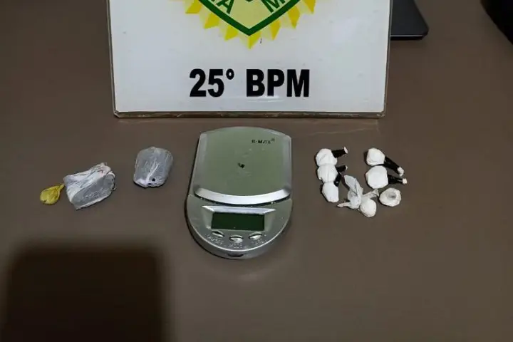 Com ele, os policiais encontraram as 7 buchas da droga que totalizavam 4,4 gramas, além da balança de precisão utilizada para medir a substância. As equipes então foram até a residência do autor, e encontraram mais 7,8 gramas de substância com características de maconha.