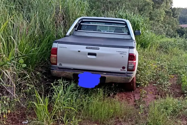 De acordo com a PM, a caminhonete Hilux, de cor prata, foi encontrada abandonada no bairro Nova Santa Helena, ao lado do aterro sanitário da cidade.