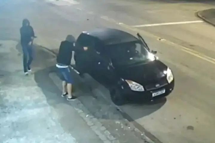 Câmeras de segurança flagraram, na noite deste domingo (26), dois homens sendo baleados por uma dupla de atiradores no bairro Cajuru, em Curitiba. As vítimas estavam dentro de um automóvel quando foram surpreendidos pelos criminosos.