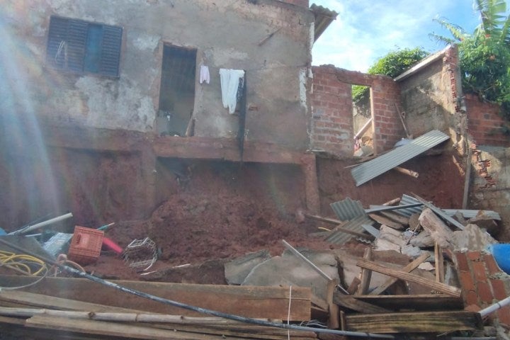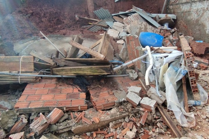 “Começou aquela chuvona aí demorou um pouquinho e a gente escutou um barulho. Minha mãe falou ‘olha, acho que o toldo deve ter caído’, aí a gente veio aqui fora e era o muro que tinha caído”, disse a jovem, em entrevista.