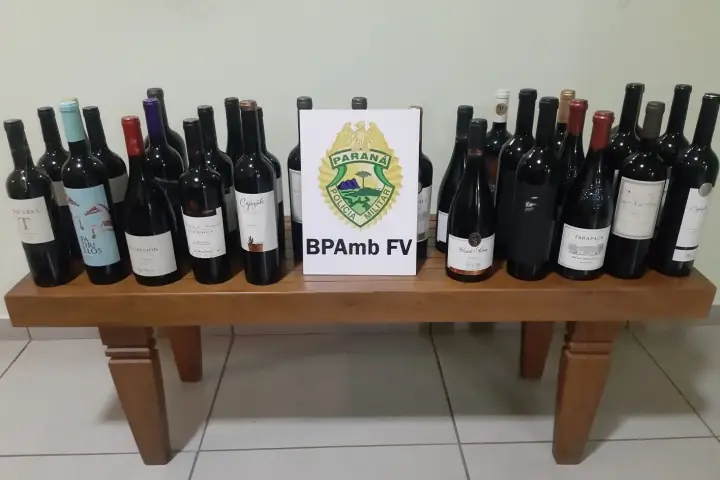 A Polícia Militar Ambiental, a Força Verde (BPAmb/FV) de Umuarama, apreendeu nesta quinta-feira (2), 29 garrafas de vinho de origem paraguaia durante uma abordagem à um comboio de veículos parados na BR-487, a Estrada Boiadeira, na região de Umuarama.