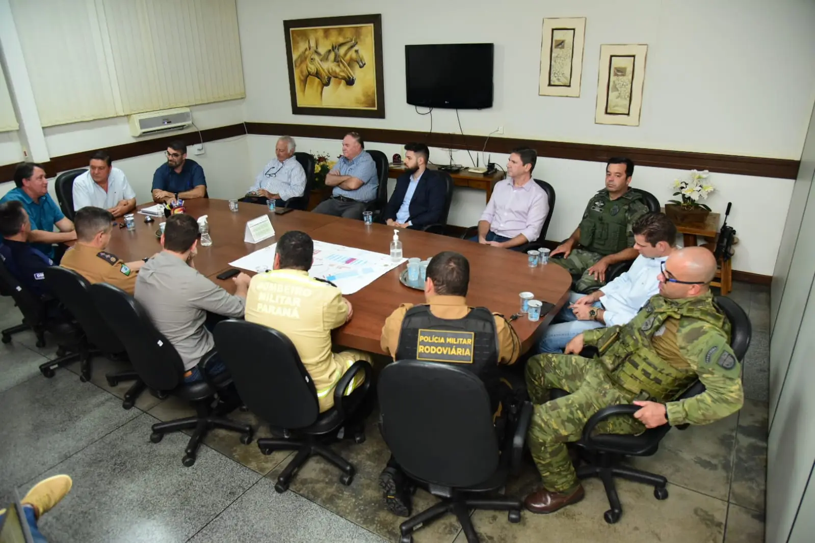 Representantes das forças policiais de Umuarama e região participaram na noite desta quinta-feira (2) de uma importante reunião coordenada pelo presidente da Sociedade Rural, Milton Gaiari. Eles apresentaram o plano detalhado de segurança para garantir a tranquilidade dos visitantes da 48a Expo Umuarama/21a Internacional.