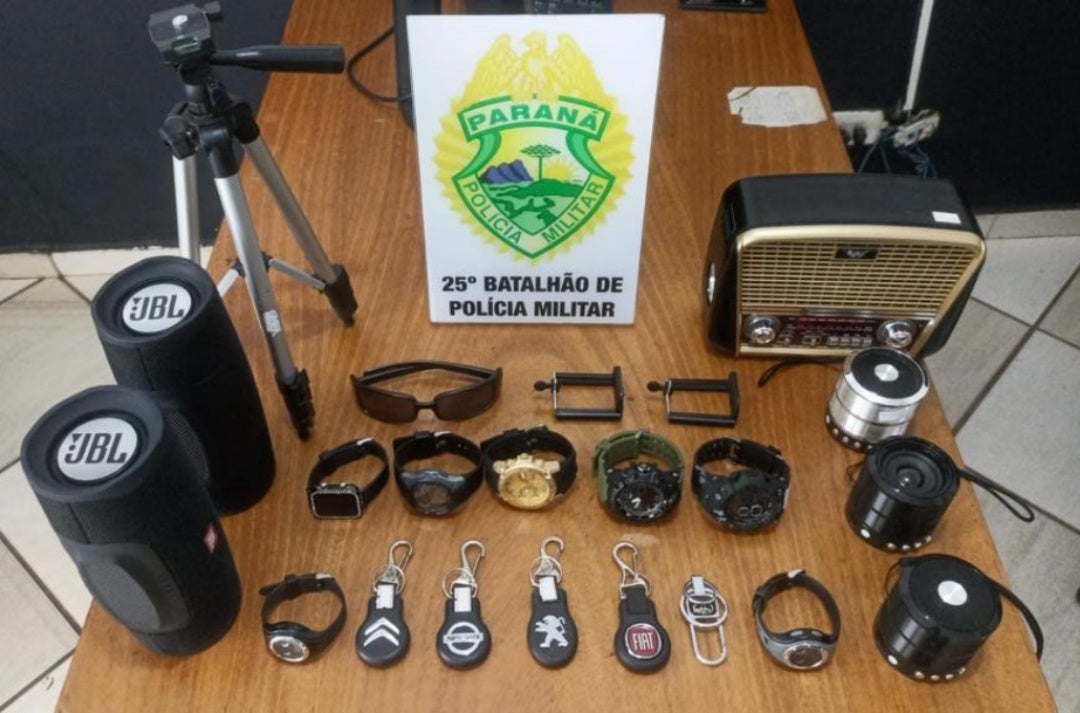 Vários objetos furtados de uma revenda de acessórios foram recuperados após terem sido abandonados na rua. O furto ocorreu entre quarta (1º) e a quinta-feira (2), no estabelecimento comercial localizado na avenida Paraná, perto da praça Santos Dumont.