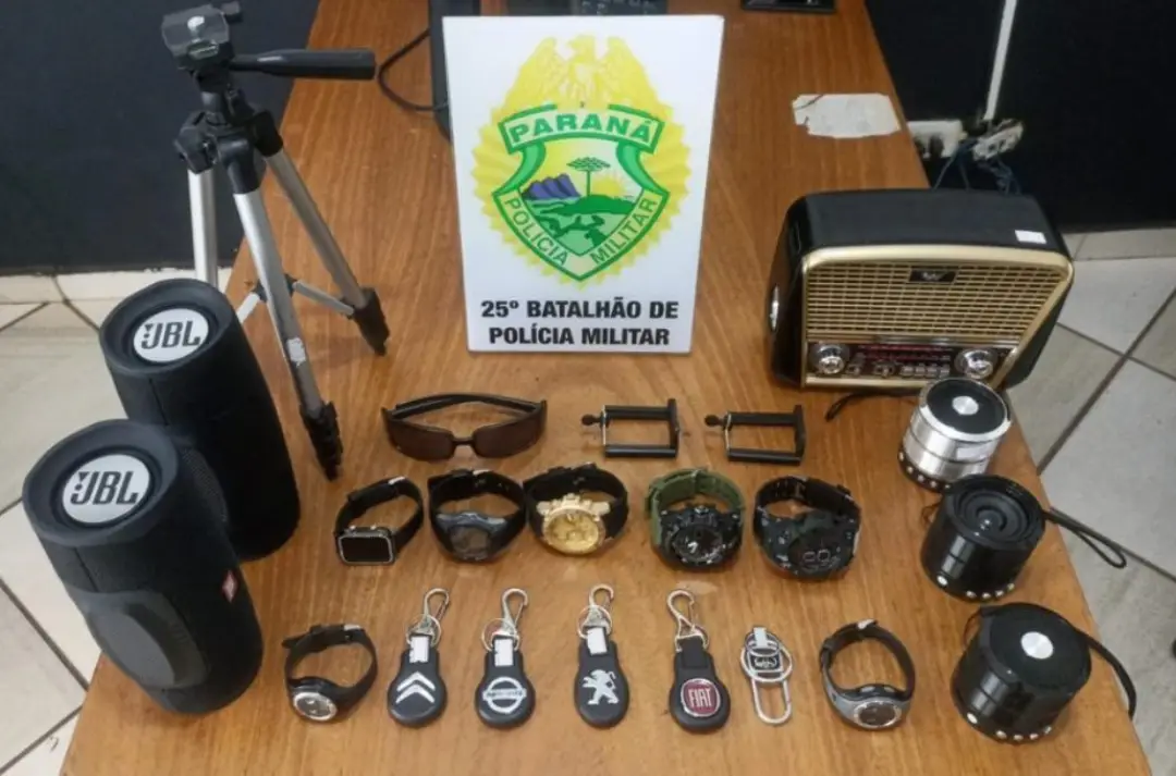 Vários objetos furtados de uma revenda de acessórios foram recuperados após terem sido abandonados na rua. O furto ocorreu entre quarta (1º) e a quinta-feira (2), no estabelecimento comercial localizado na avenida Paraná, perto da praça Santos Dumont.