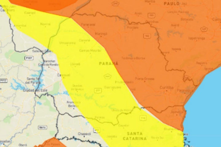 A Defesa Civil do Paraná também emitiu um aviso de chuvas intensas, com raios e vendaval para as regiões Noroeste, Litoral, Oeste e Campos Gerais.