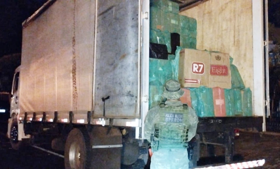 BPFron apreende caminhão carregado com cigarros contrabandeados em Perobal
