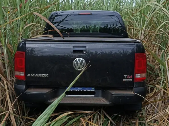 A PM informou que era por volta das 8h10 quando a caminhonete foi encontrada. O roubo da Amarok, cor preta e ano 2012, tinha ocorrido algumas horas antes. Os policiais receberam as informações do roubo e que o veículo estava escondido em um canavial na margem da rodovia PR-468.