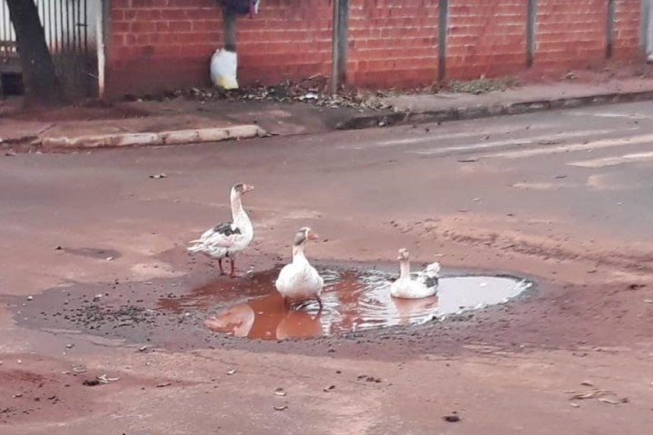 Criativos, os moradores logo fotografaram a cena e nomearam o buraco como “Lagoa dos Gansos”. Ao Portal Alto Piquiri, um internauta afirmou que os animais estão frequentando o buraco há dias e em várias ocasiões foram vistos tomando banho.