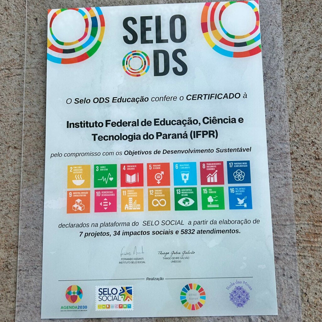O Instituto Federal do Paraná (IFPR) está entre as 17 instituições de ensino que receberam a certificação do Selo ODS Educação. O evento aconteceu no último dia 9 de março, em Brasília.