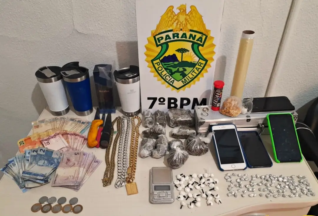 Policiais do 7º Batalhão de Polícia Militar (BPM) apreenderam em Tuneiras do Oeste drogas para comercialização. A apreensão aconteceu na quarta-feira (15) após uma abordagem. Dois homens envolvidos com tráfico de entorpecentes foram presos.