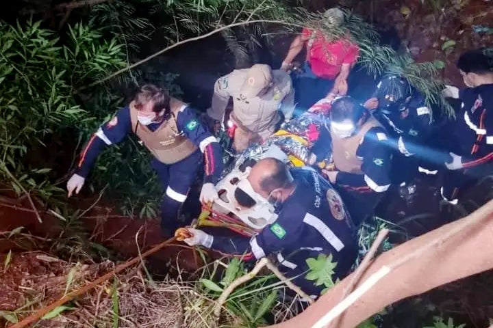 De acordo com as informações, a Polícia Militar (PM) foi acionada por uma testemunha que informou que uma pessoa estava gritando por socorro em meio a uma mata no local. As equipes encontraram a vítima caída em um barranco com ferimentos considerados graves.