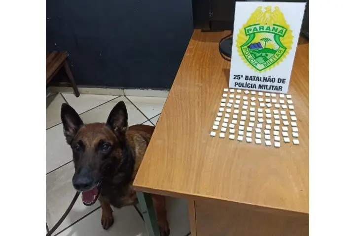 Policiais do Canil do 25º Batalhão de Polícia Militar (BPM) apreenderam 98 comprimidos de Ecstasy (3,4-metilenodioximetanfetamina) que chegaram à Umuarama em uma correspondência enviada do Rio de Janeiro. A ação foi realizada no fim da tarde de sexta (17) com ajuda do cão de faro Iron.