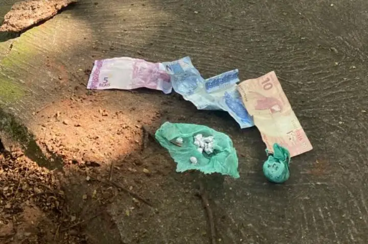 Seguindo a denúncia, os policiais encontraram em um tronco de árvore mais porções da droga e dinheiro. Ao perguntarem ao autor sobre a procedência dos entorpecentes, ele admitiu serem de sua propriedade e que vendia cada unidade por R$ 10.