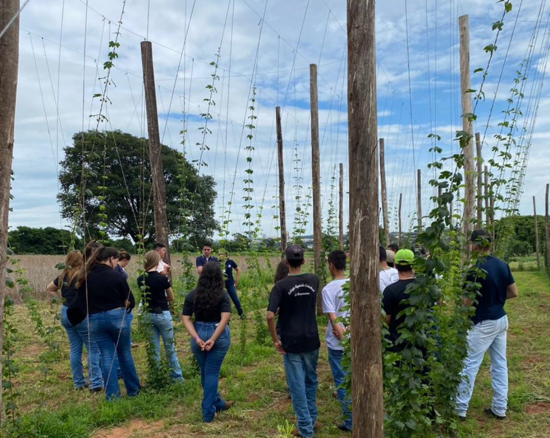 Em seguida os participantes foram divididos em grupos e acompanharam 6 estações, organizadas e apresentadas pelos próprios alunos do curso, sendo elas: perfil do solo, estação meteorológica, manejo integrado de pragas, irrigação e pesquisa com lúpulo, hidroponia, manejo do solo com diferentes culturas.