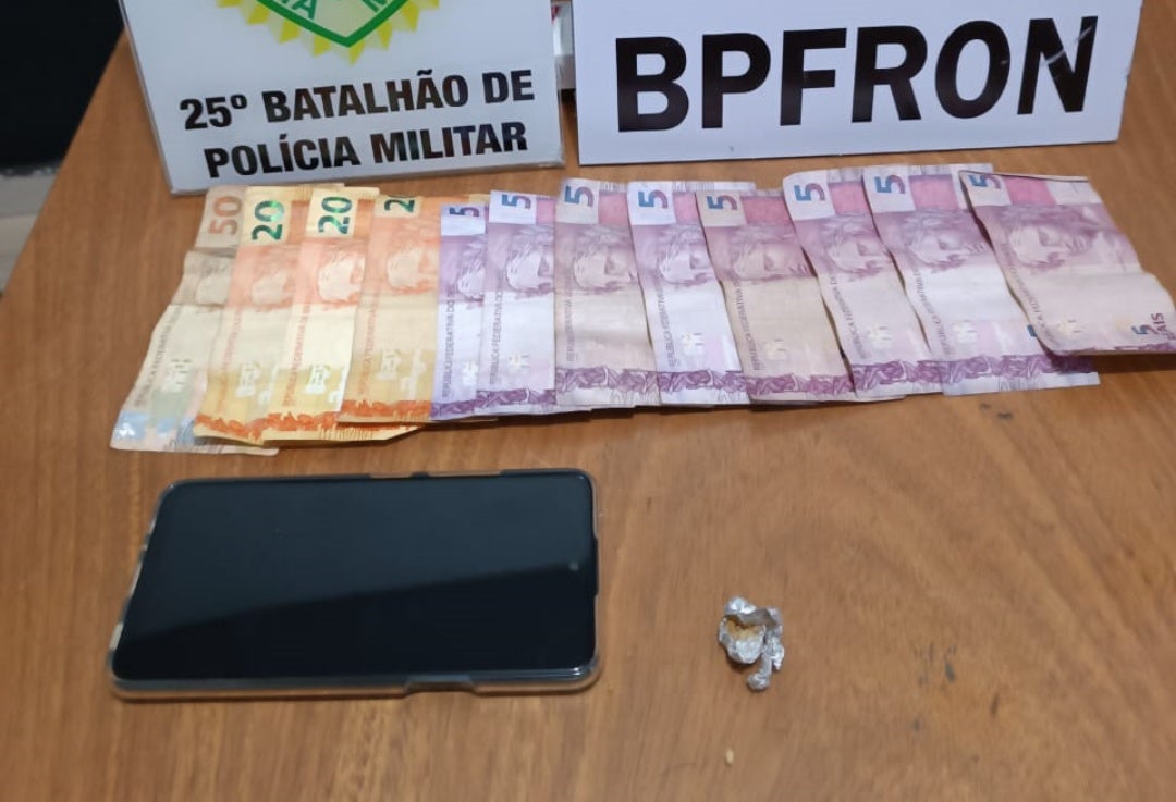 Com o traficante foram apreendidos R$ 150 e um celular. O suspeito foi encaminhado para a Delegacia de Polícia Civil.