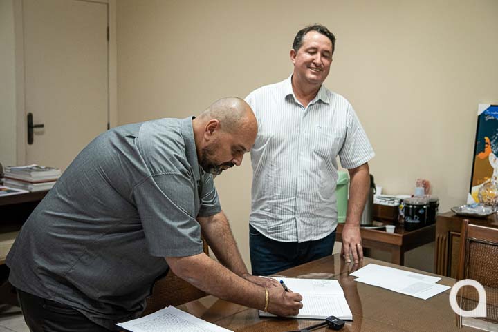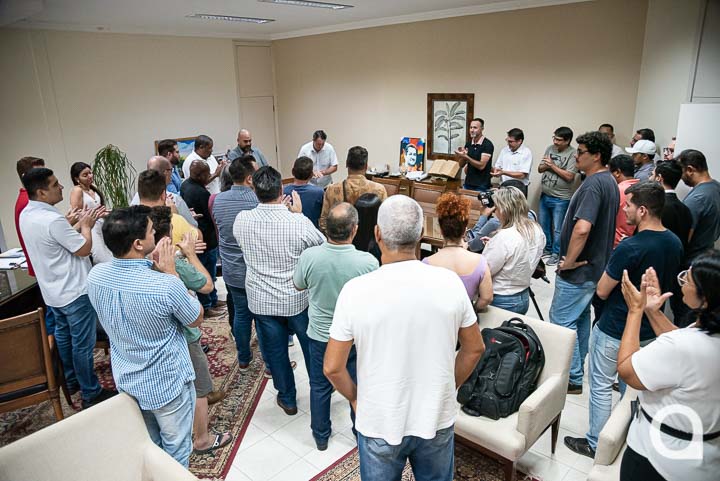 A cerimônia de transmissão de cargo aconteceu no gabinete do prefeito e foi acompanhado por secretários municipais, amigos do prefeito e a imprensa local.