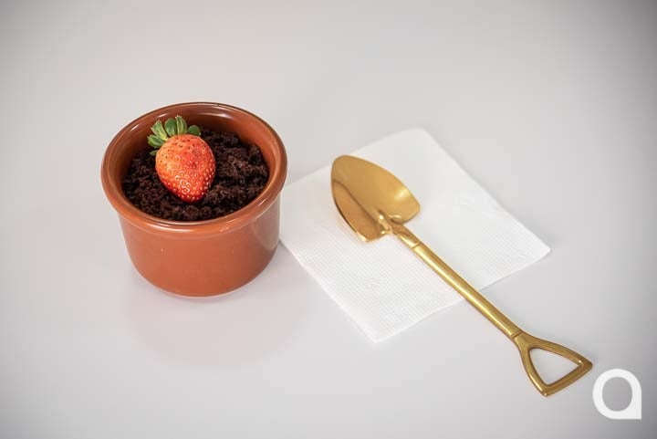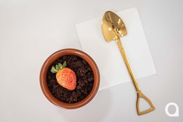Diariamente no espaço físico ela também serve croissants, saladas, baurus, omeletes e diversos doces em pote – como o inusitado “bolo terrinha”, que vem inclusive com uma colher em formato de pá. A empresa também é especializada em atender eventos com coquetéis de frios.