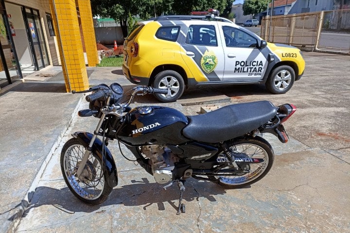 Uma motocicleta Honda CG Titan 150 foi apreendida pela Polícia Militar (PM) na manhã deste domingo (26), após o condutor, de 16 anos, ser flagrado “empinando” o veículo e tentar fugir da abordagem policial pouco após o ato, em Umuarama.
